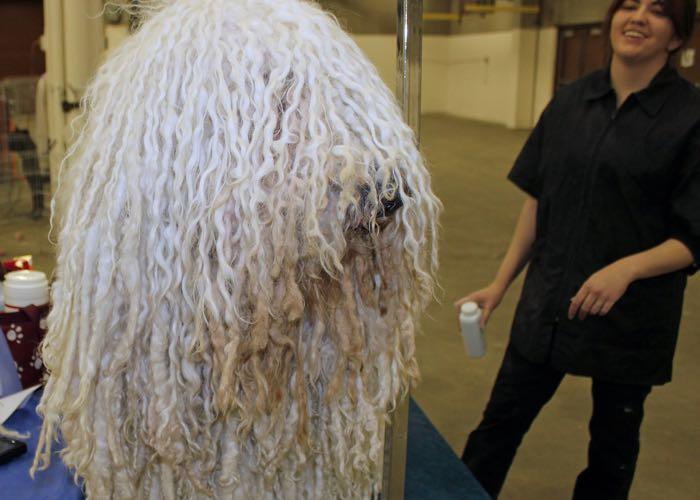 This big pup hails from Hungary and is used to protect livestock. These canines look like giant mops, with their white corded coats.